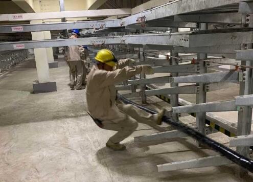 【是時候展示真正的技術了】5月18日,市南供電分公司電纜班工作人員按照規(guī)定進行工作前的各項準備后,開始110kV雁棲變電站電纜夾層內交流10KV雁棲十五線電纜敷設工作,嫻熟的動作充分展示了工作人員的技能水平。 ????