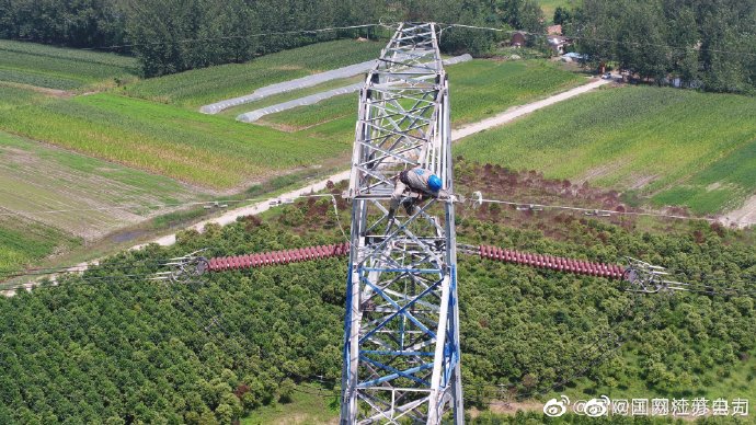 8月17日,國(guó)網(wǎng)江蘇檢修公司徐州運(yùn)維站輸電運(yùn)檢班在500千伏岱吾線開展帶電作業(yè)。烈日酷暑下,工作人員身穿屏蔽服,采用地電位消除地線隱患,確保電網(wǎng)安全穩(wěn)定運(yùn)行。 ????