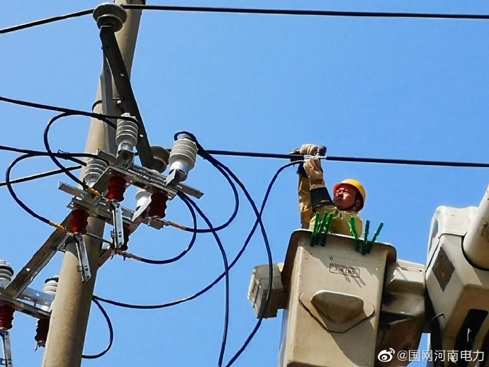 8月28日,雖已入秋,可“秋老虎”持續(xù)發(fā)威,室外溫度高達(dá)35攝氏度。國(guó)網(wǎng)長(zhǎng)葛市供電公司帶電作業(yè)班堅(jiān)守在高溫下,僅用一個(gè)小時(shí)完成10千伏金剛線永基倉(cāng)儲(chǔ)臺(tái)區(qū)接引線工作。(趙娣 桂小鋒) ????