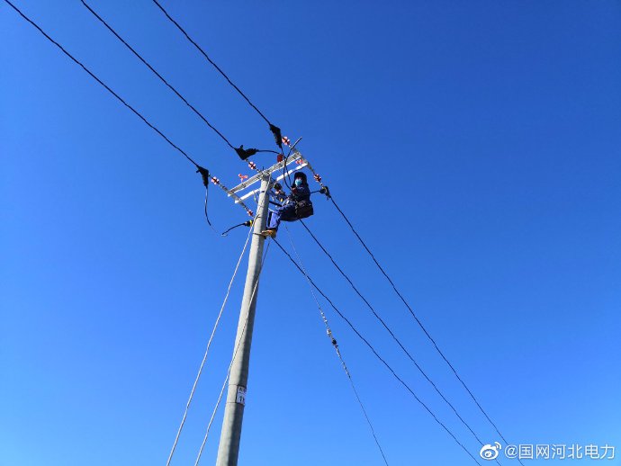 天空湛藍(lán)寒風(fēng)凜冽,線路檢修送溫暖。12月7日,國網(wǎng)滄州市渤海新區(qū)供電公司員工在石玻5713線進行線路檢修,為居民冬季取暖保駕護航。(田浩 龐勇) ????